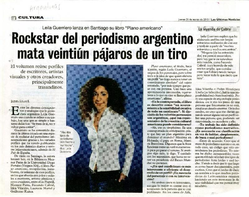 Rockstar del periodismo argentino mata veintiún pájaros de un tiro [artículo] Jazmín Lolas E.