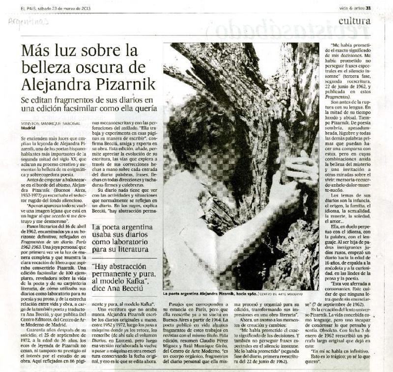 Autoras argentinas - Pizarnik, Alejandra - Fragmentos de un diario:Paris 1962-1963
