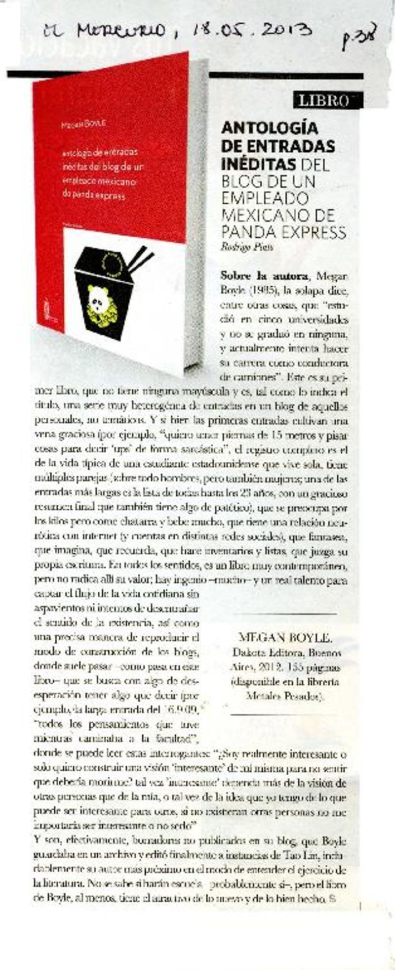 Autoras argentinas - Boyle, Megan - Antología de entradas inéditas del blog de un empleado mexicano de panda express