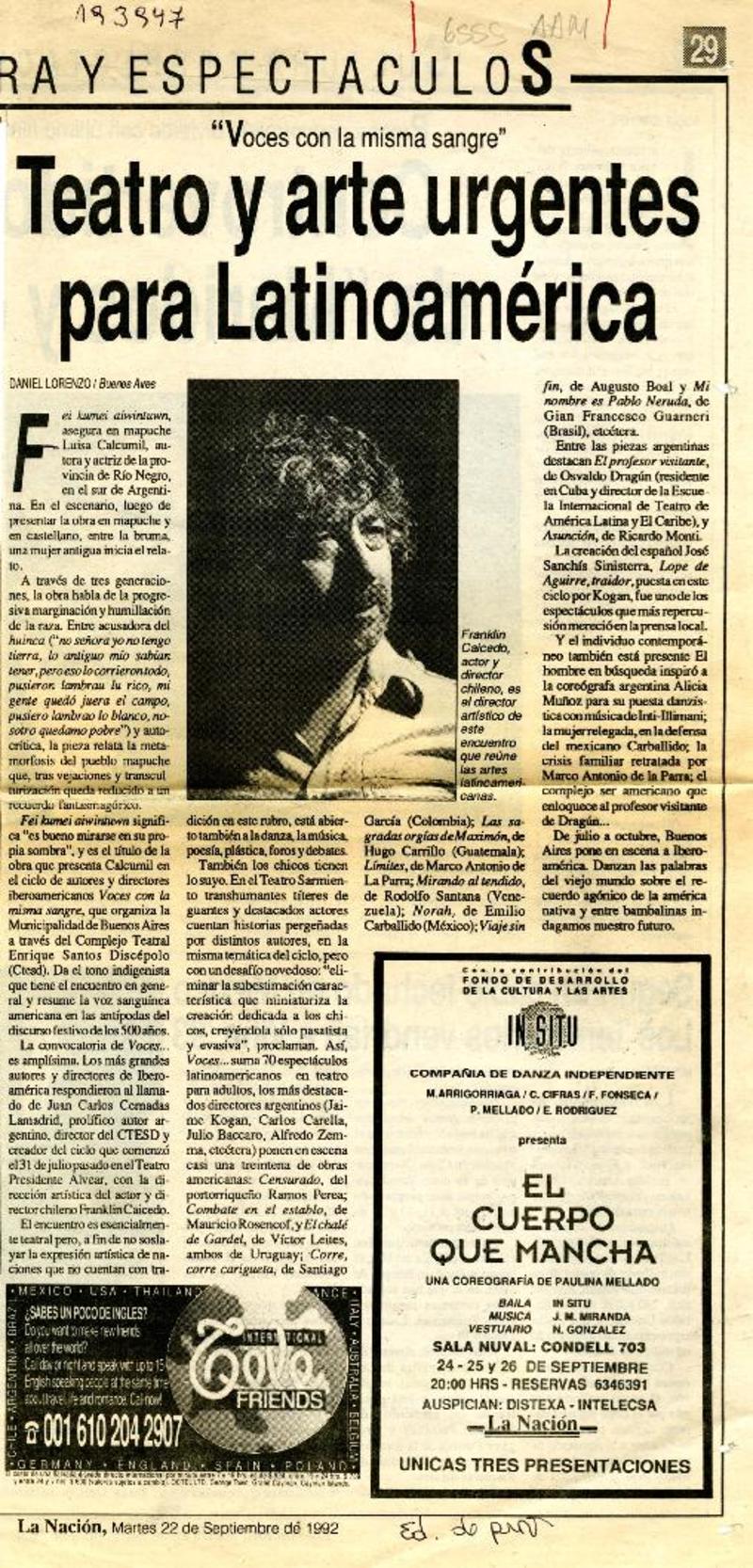 Teatro y arte urgentes para Latinomérica [artículo] Daniel Lorenzo.
