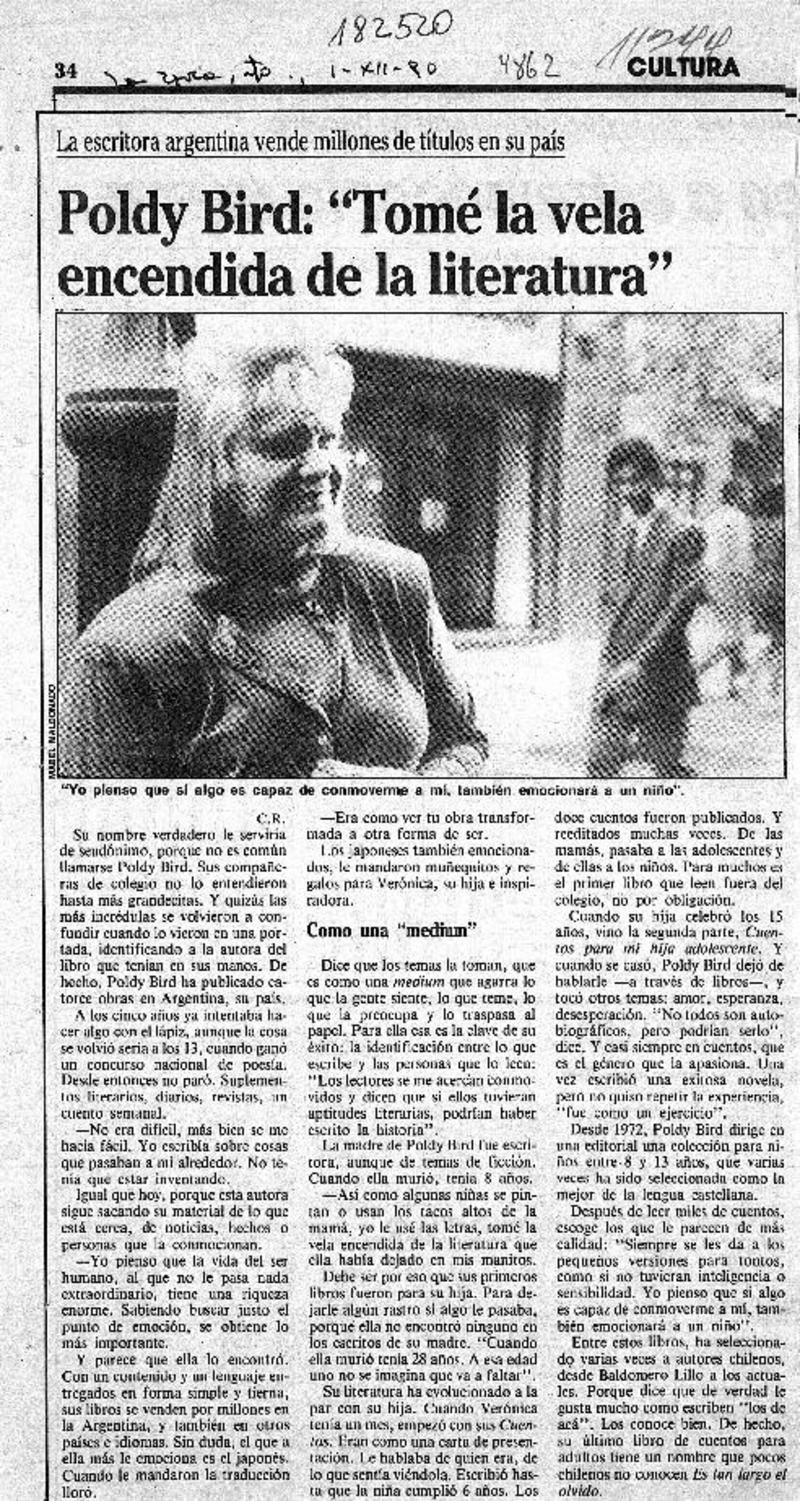 Adiòs a Marìa Elena Walsh, la escritora de los niños [artículo] Alicia Rinaldi.