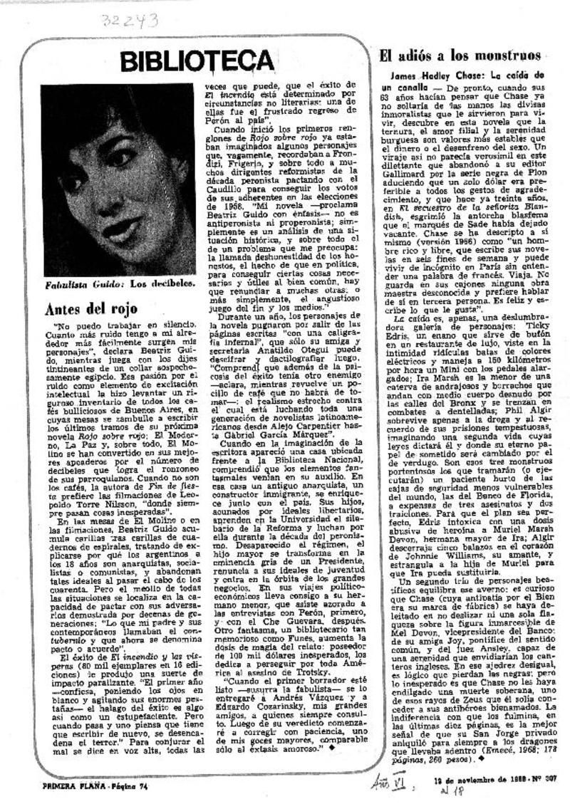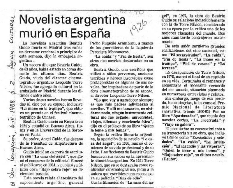 Ayer murió en Madrid la escritora Beatriz Guido. [artículo]