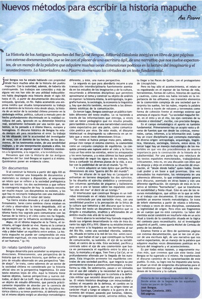 Nuevos métodos para escribir la historia mapuche [artículo] Ana Pizarro.