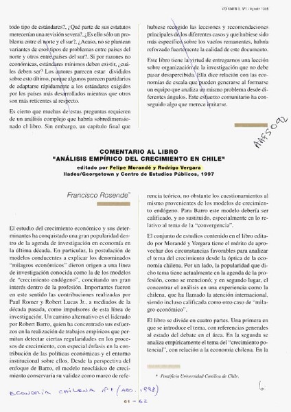 "Análisis empírico del crecimiento en Chile" [artículo] Francisco Rosende.