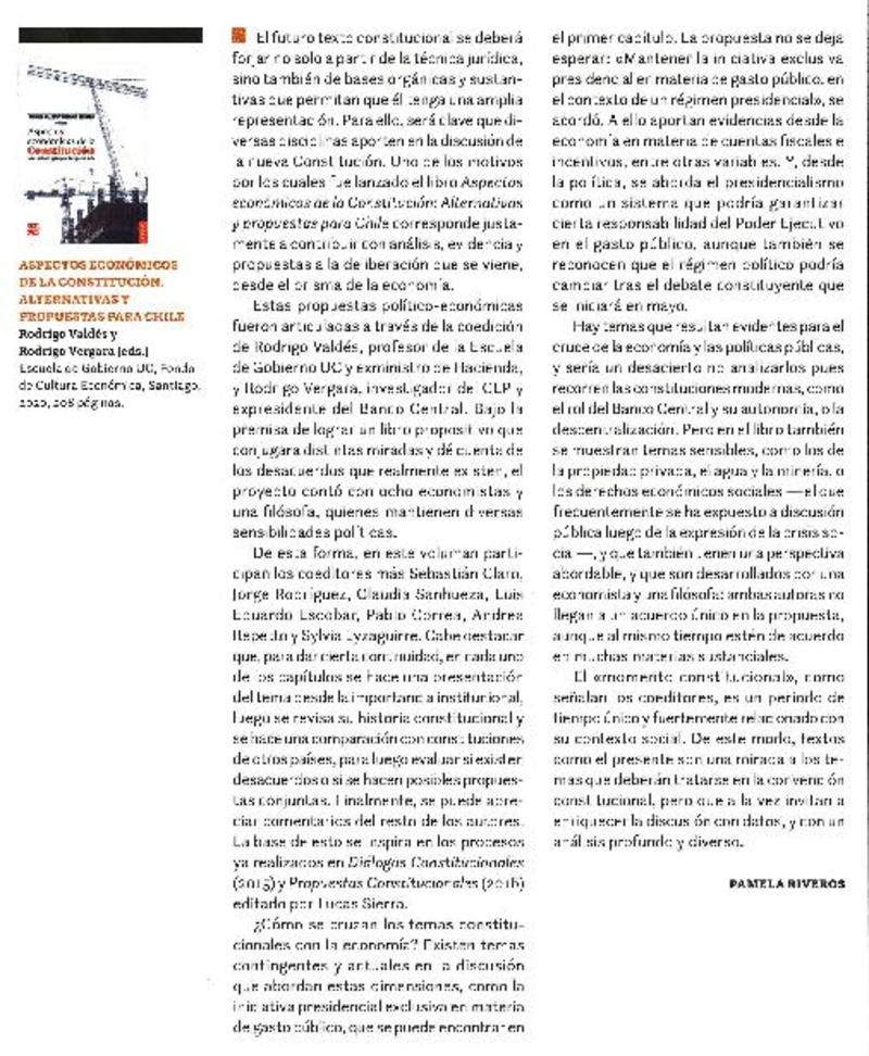 Aspectos Económicos de la Constitución. Alternativas y Propuestas Para Chile [artículo] Pamela Riveros.