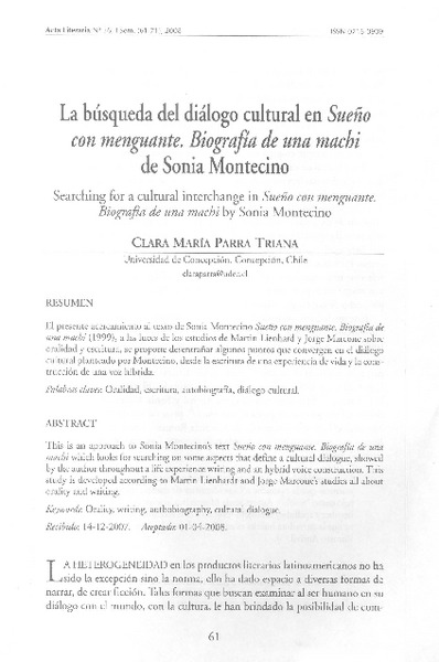 La búsqueda del diálogo cultural en Sueño con menguante [artículo] Clara María Parra Triana.
