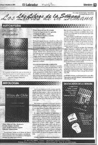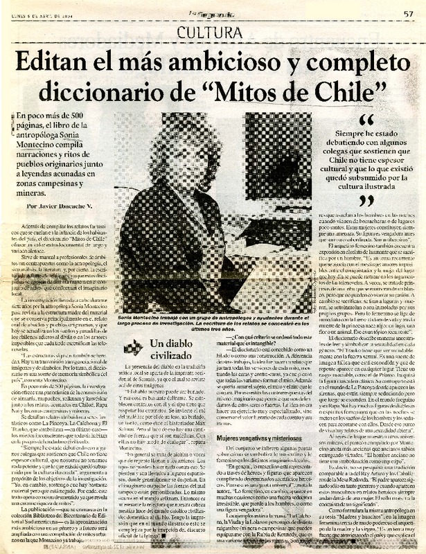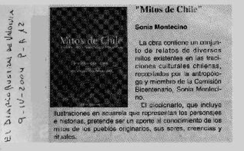 Editan el más ambicioso y completo diccionario de "Mitos de Chile") [artículo] Javier Ibacache V.