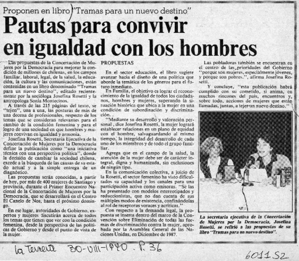 Autores chilenos - Montecino, Sonia - Tramas para un nuevo destino - Rossetti, Josefina