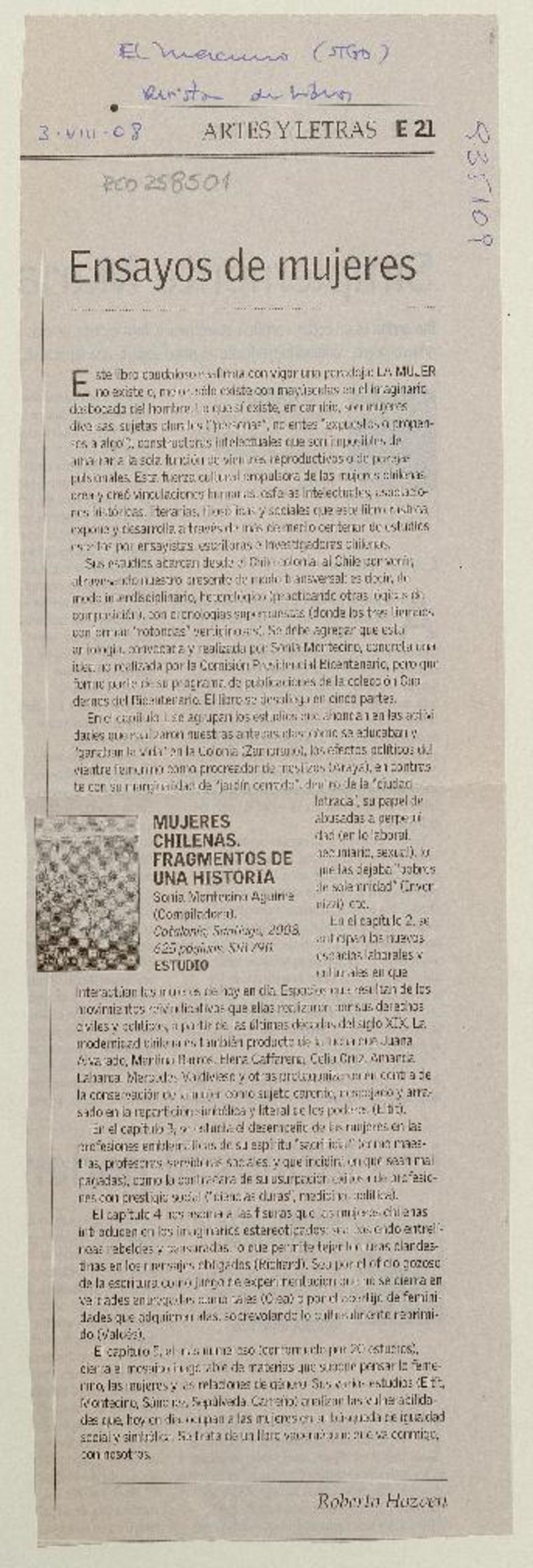 Ensayos de mujeres [artículo] Roberto Hozven.