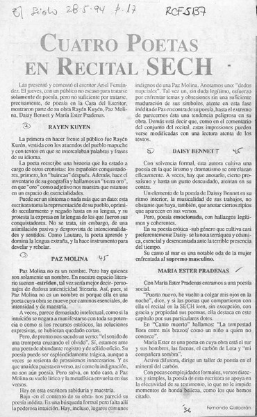 Cuatro poetas en recital SECH [artículo] Fernando Quilodrán.
