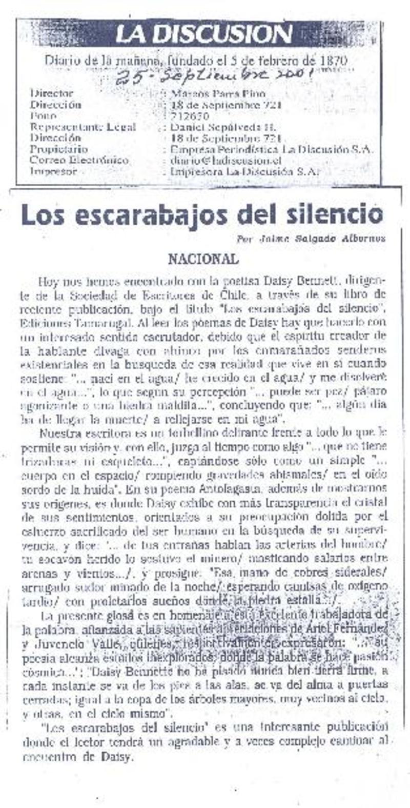 Los escarabajos del silencio [artículo] Jaime Salgado Albornoz.