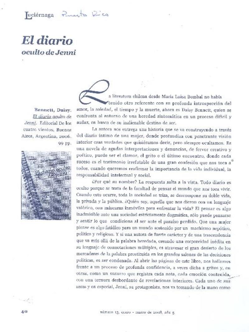 Daisy Bennett y un diario [artículo] Marino Muñoz Lagos