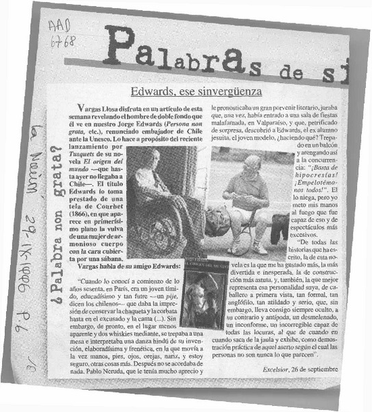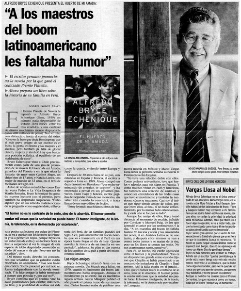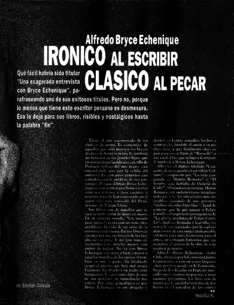 Alfredo Bryce Echenique, "Soy un botarate" [artículo] Yolanda Vaccaro.