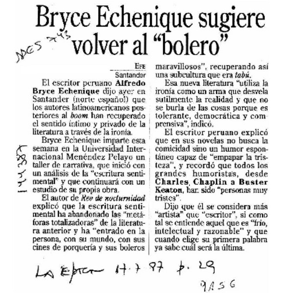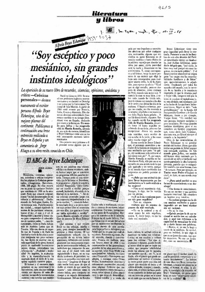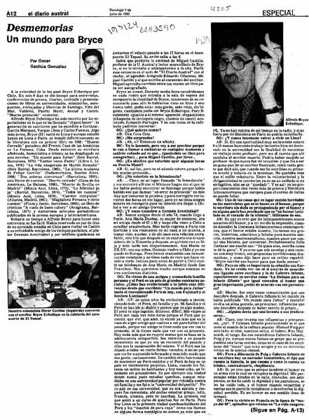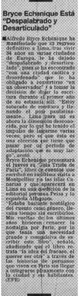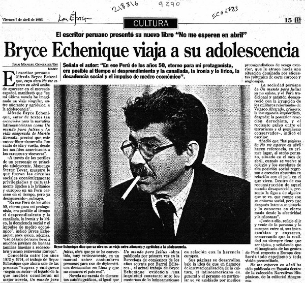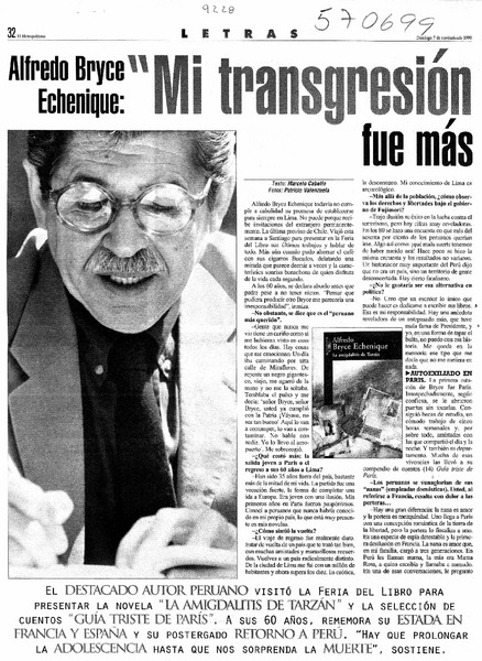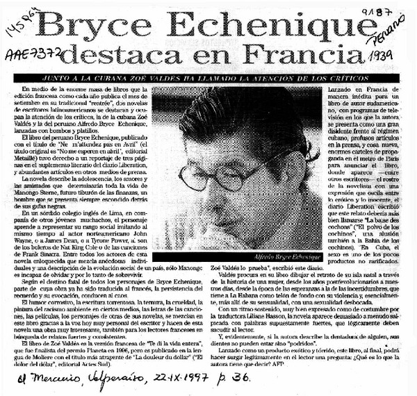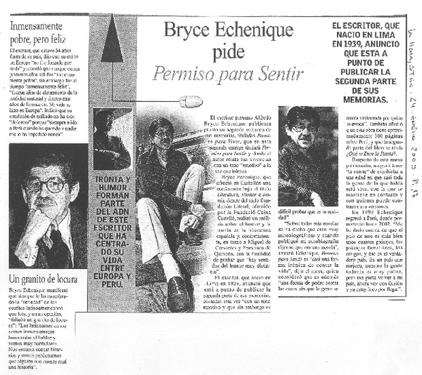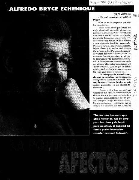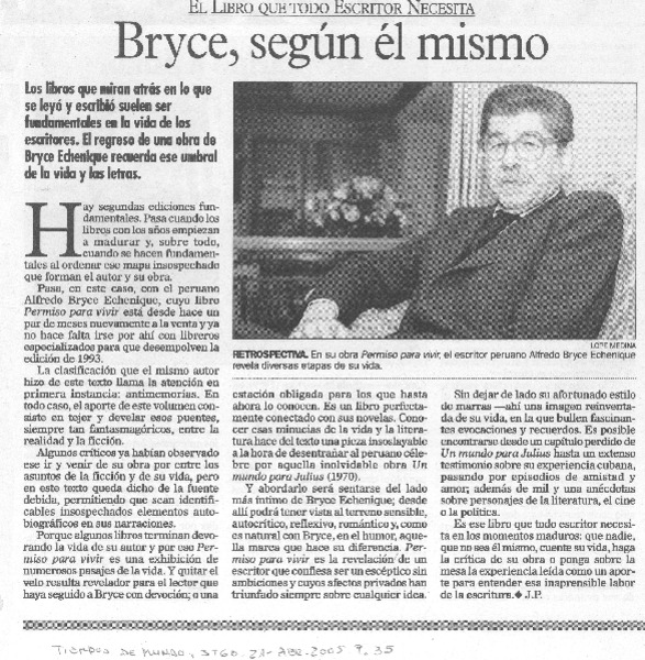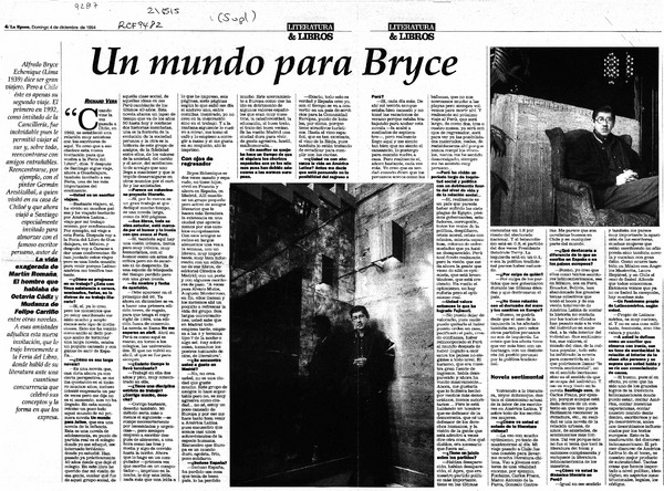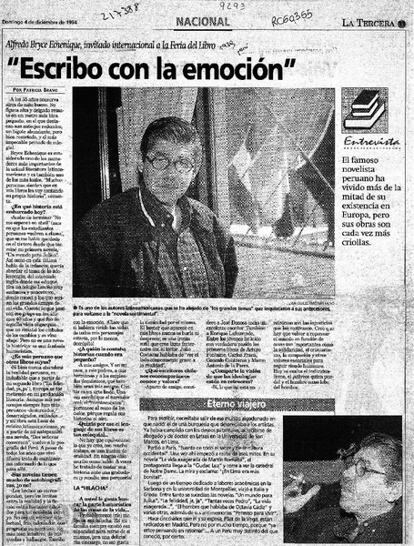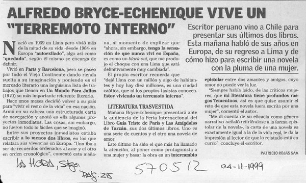 Alfredo Bryce-Echeñique vive un "terremoto interno" [artículo] Patricio Rojas Saa