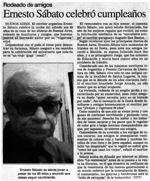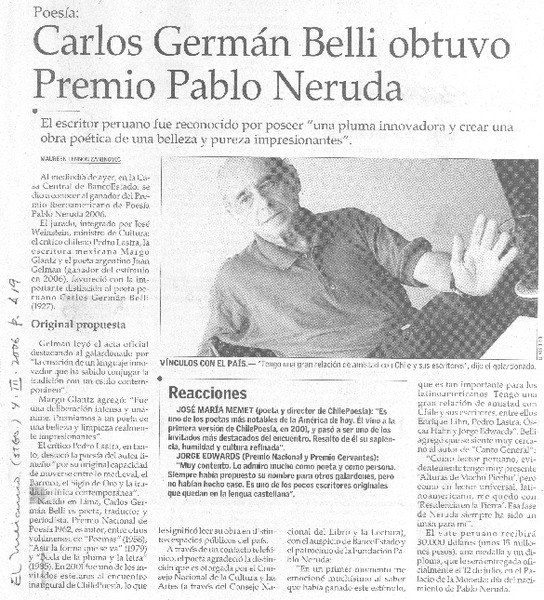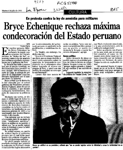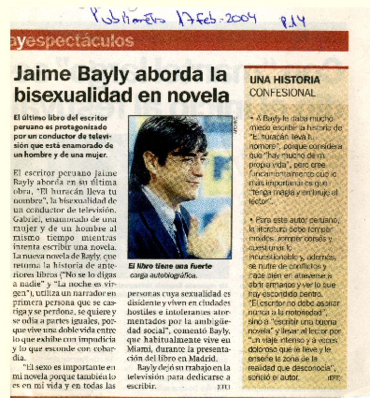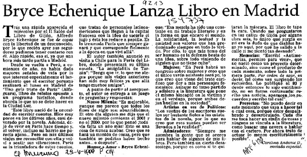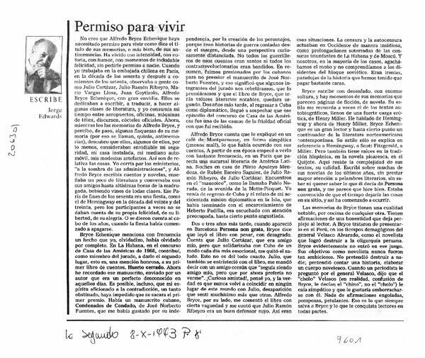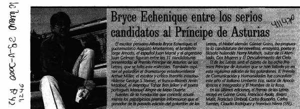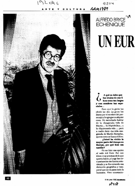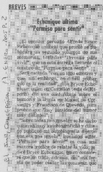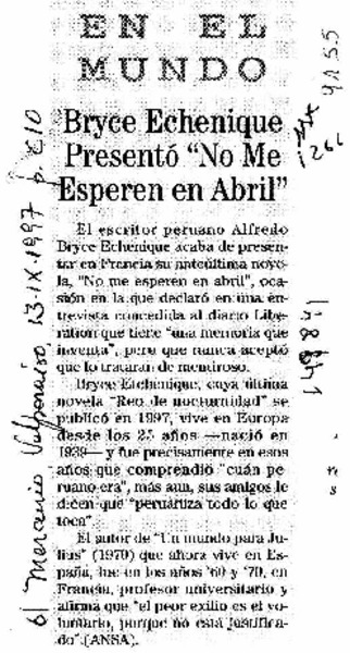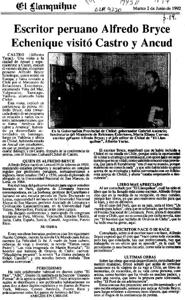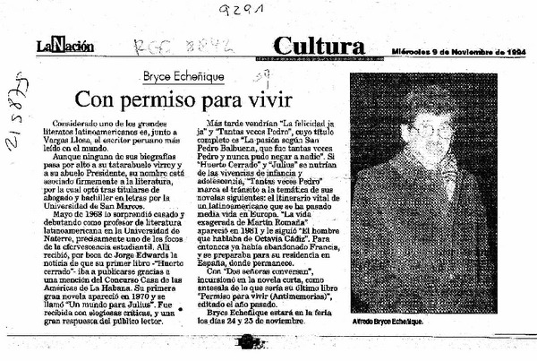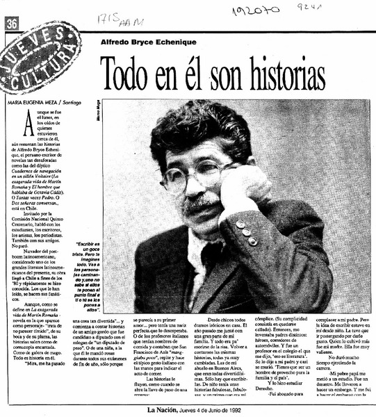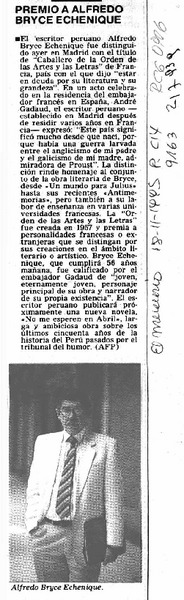 Alfredo Bryce-Echeñique vive un "terremoto interno" [artículo] Patricio Rojas Saa