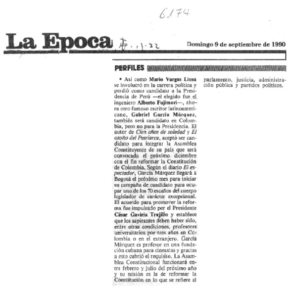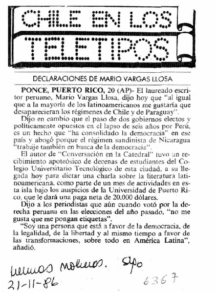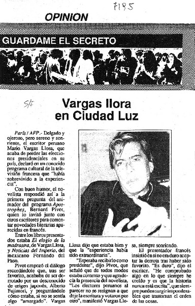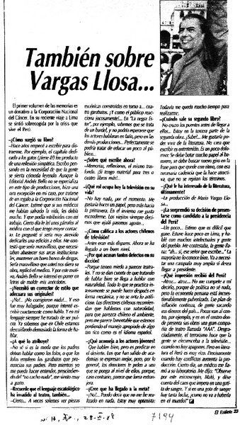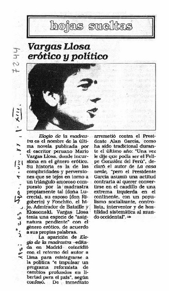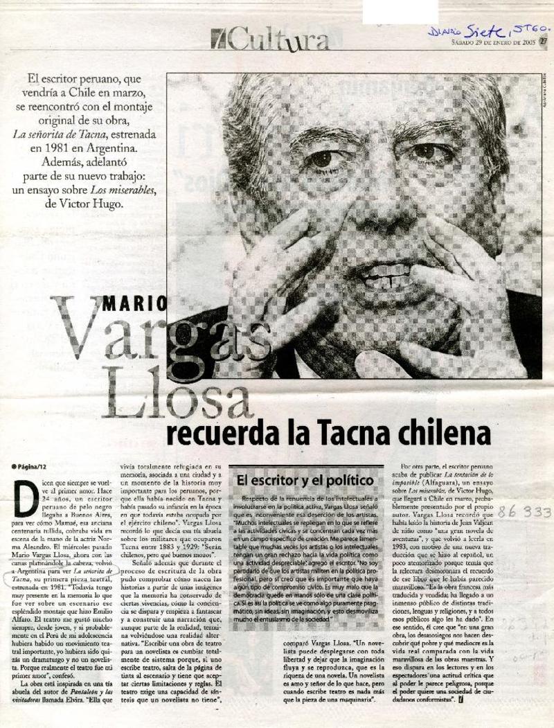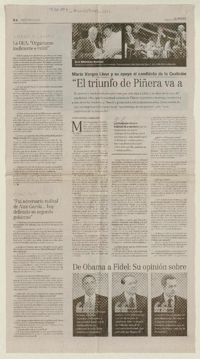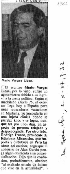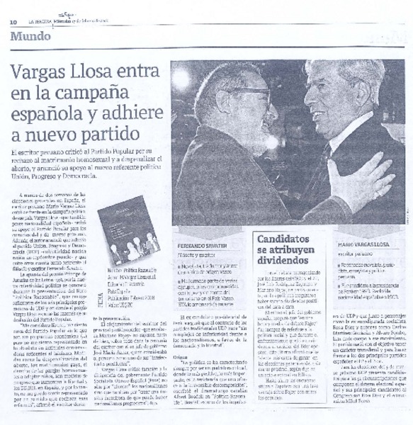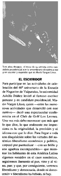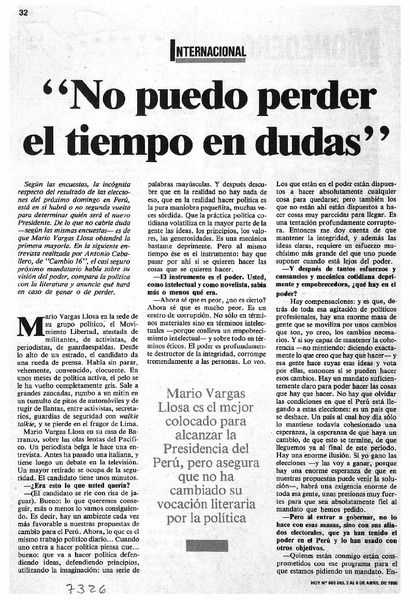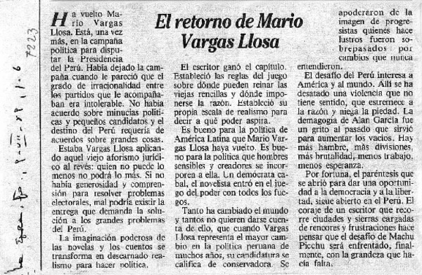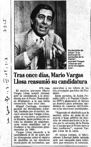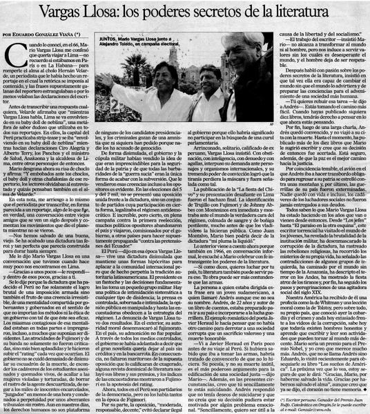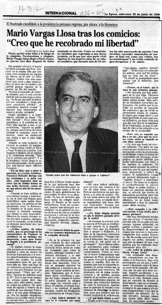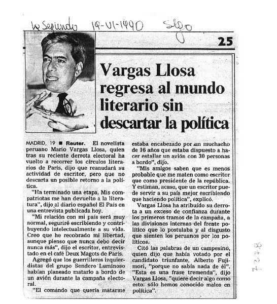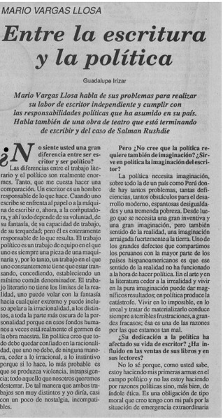 Vargas Llosa seguirá en política pero no abandonará sus tareas de escritor. [artículo]