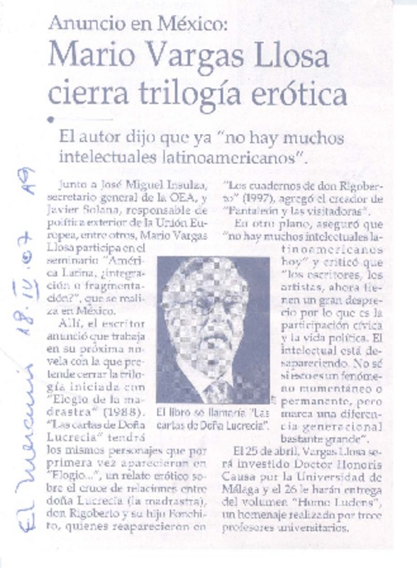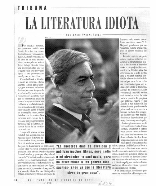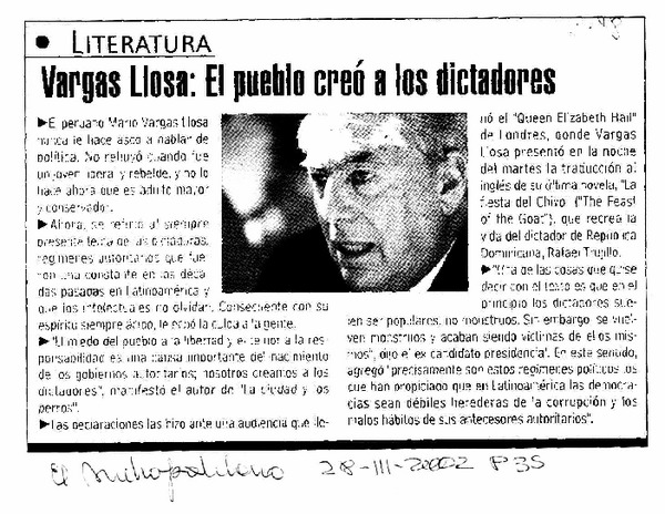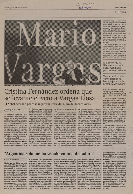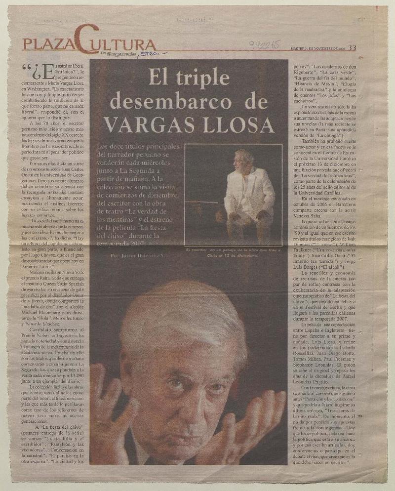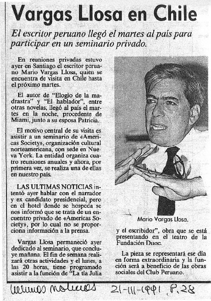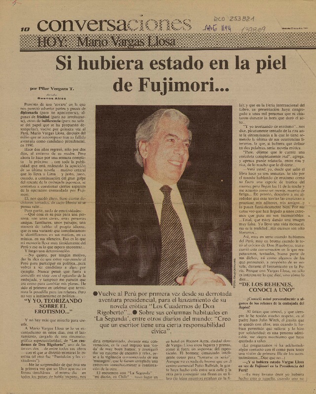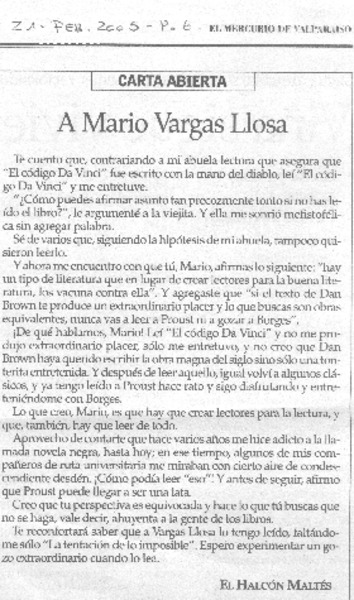 Vuelve, Vargas Llosa vuelve [artículo] Sara Valdés.