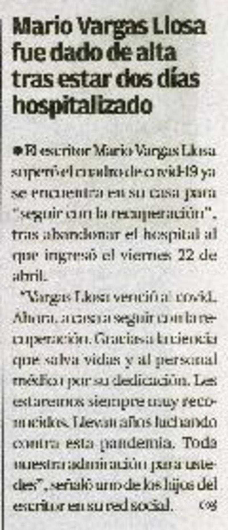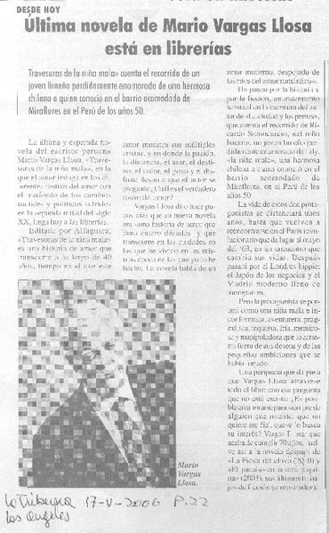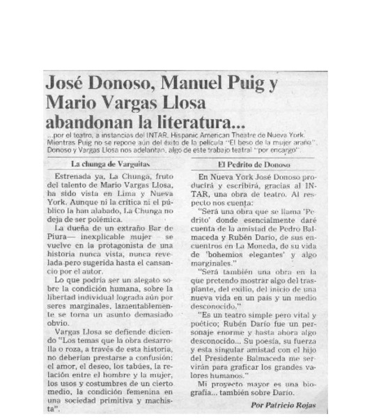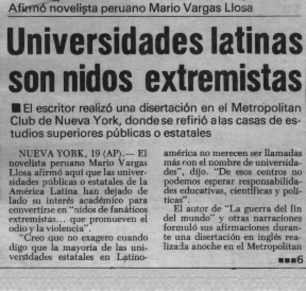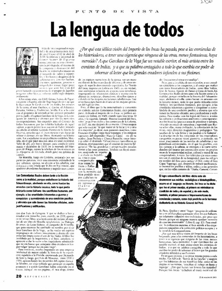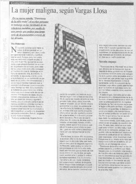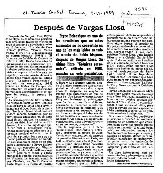 Vuelve, Vargas Llosa vuelve [artículo] Sara Valdés.