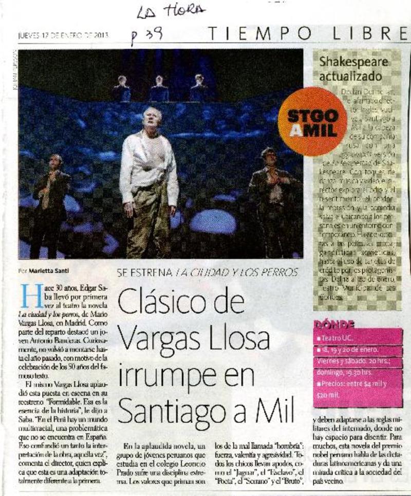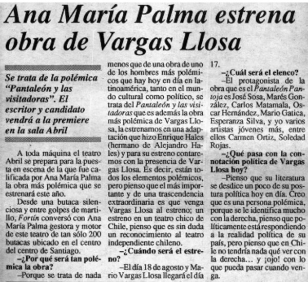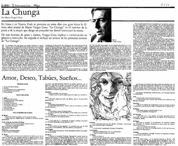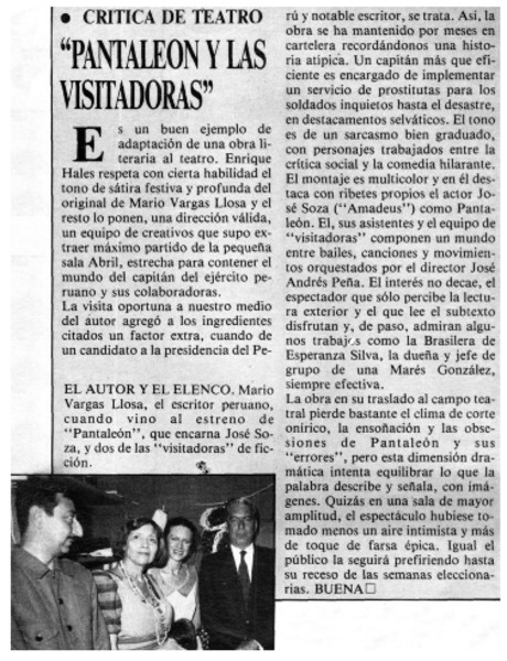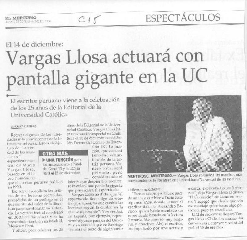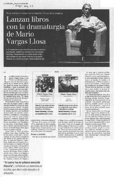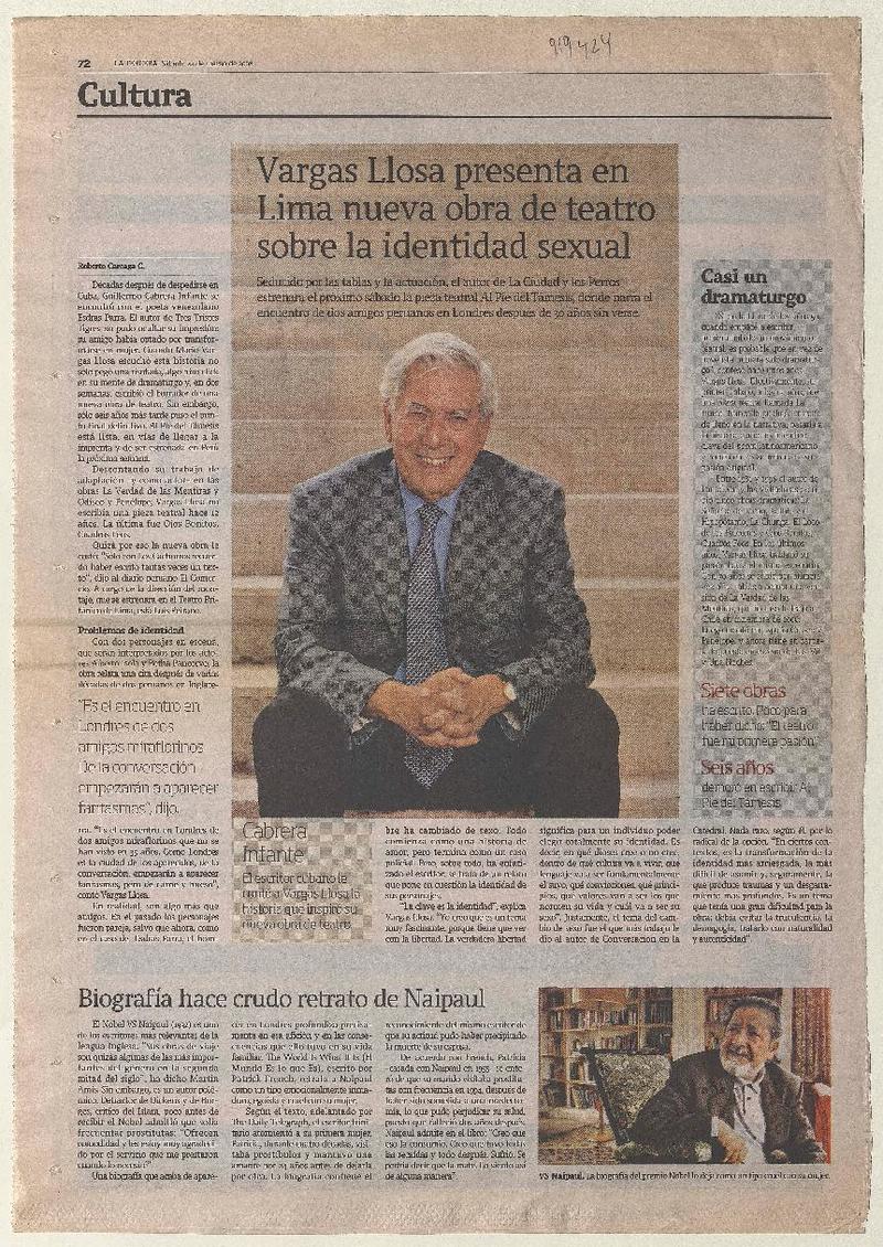 Vargas Llosa presenta en Lima nueva obra de teatro sobre la identidad sexual [artículo] Roberto Careaga C.