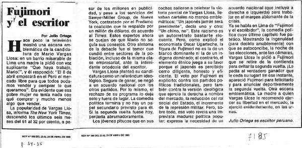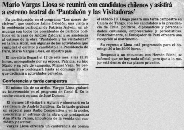 Vargas Llosa: "Si no gano las elecciones me retiro de escribir". [artículo]