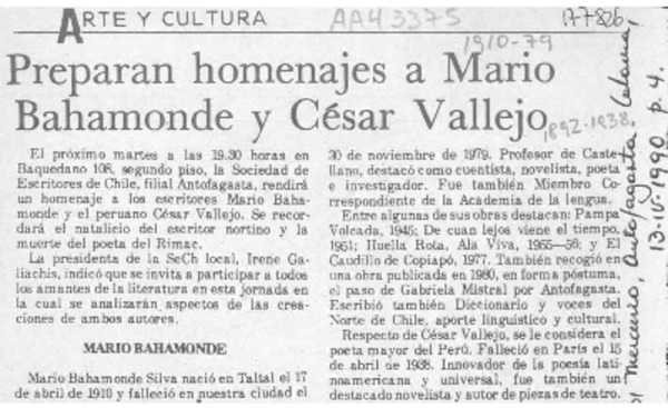 Autores chilenos - Autores peruanos - Alcalde, Alfonso - Vallejo, César