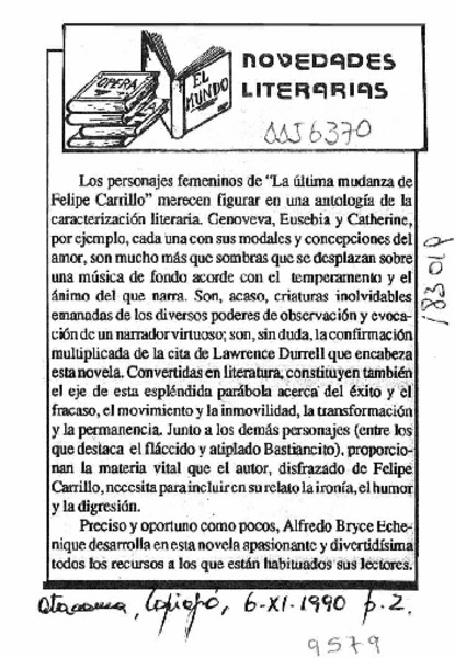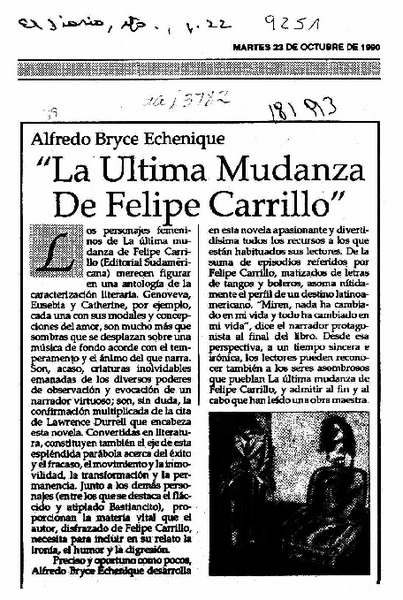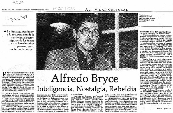 Alfredo Bryce inteligencia, nostalgia, rebeldía [artículo] Carola Oyarzún L.