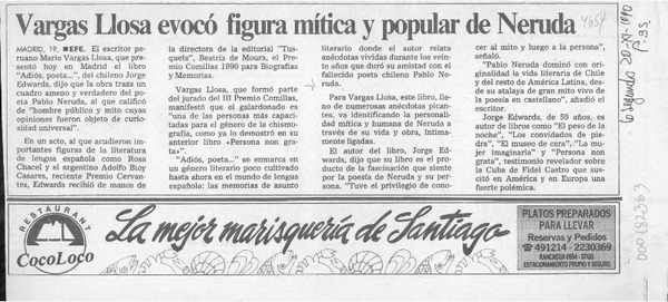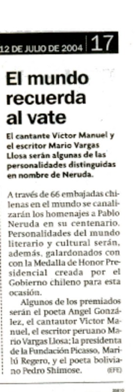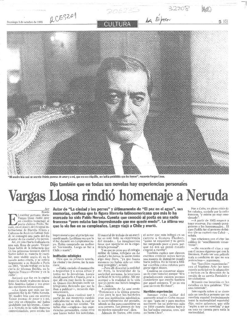 Vargas Llosa: "Neruda fue cortesamo de Stalin" [artículo] Andrés Gómez Bravo.