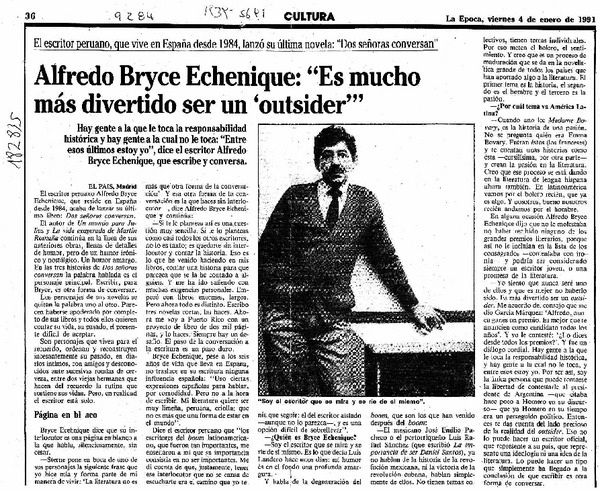 Alfredo Bryce Echenique, "Es mucho más divertido ser un 'outsider'" [artículo].