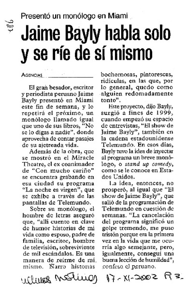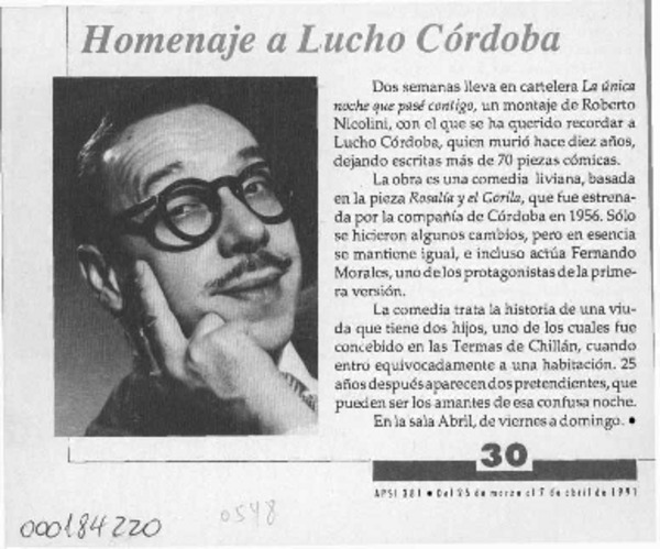 Vuelve la comedia al estilo de Lucho Córdova [artículo].