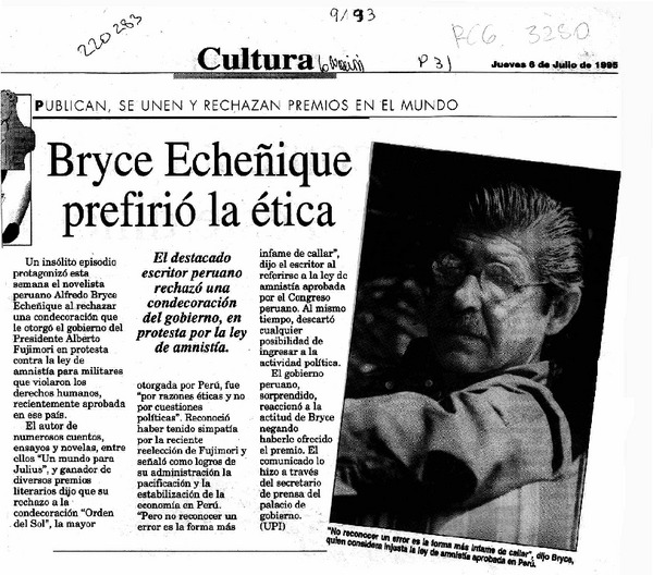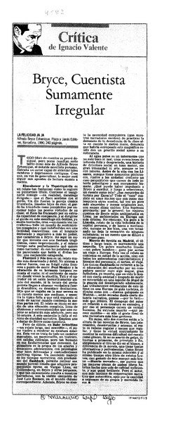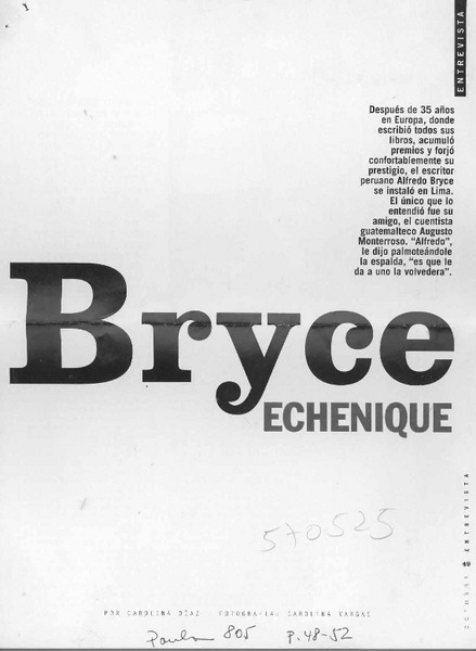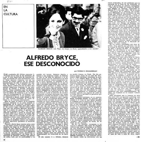 Alfredo Bryce, ese desconocido [artículo] Tomás G. Escajadillo.