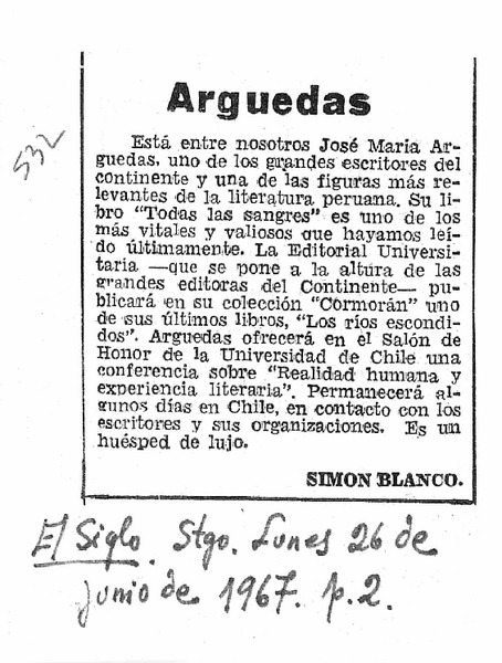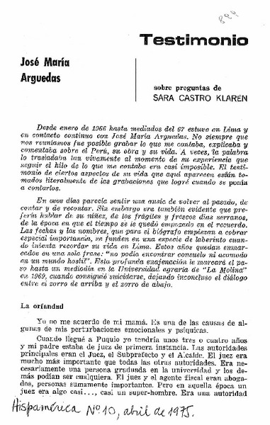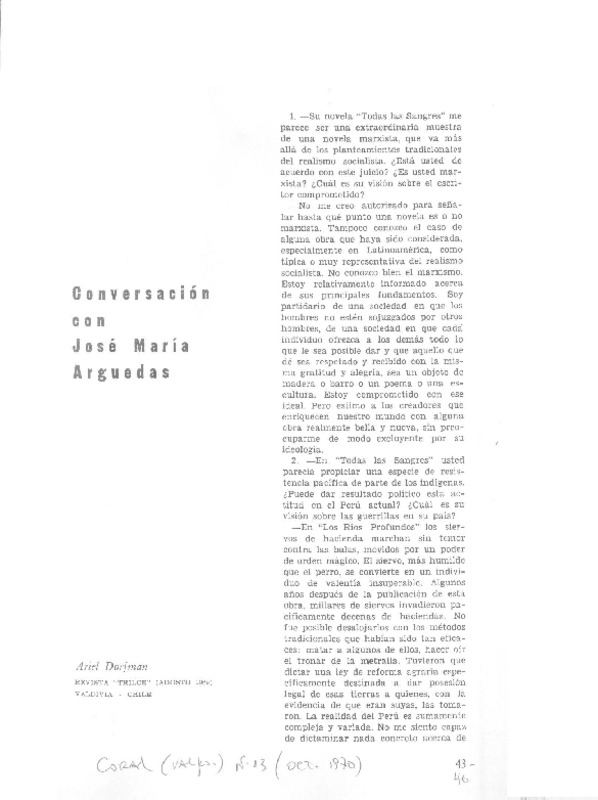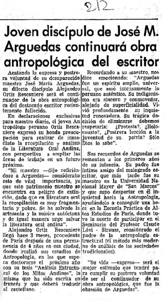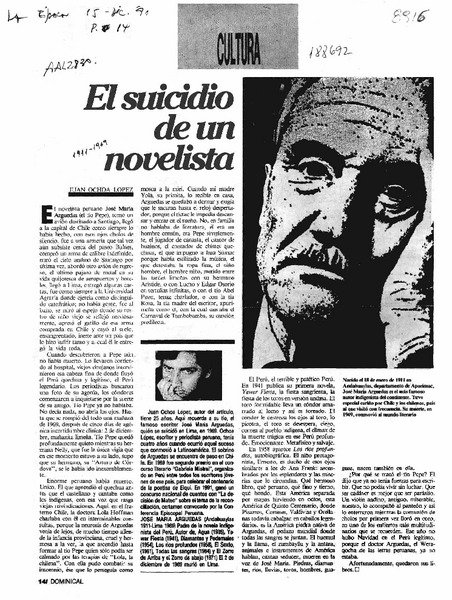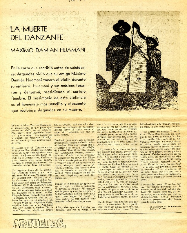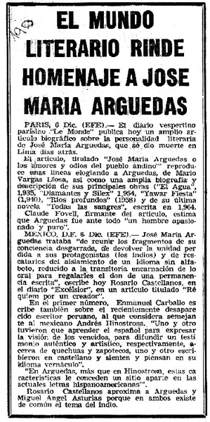 A 22 años de la muerte del escritor José María Arguedas [artículo] Hurive.