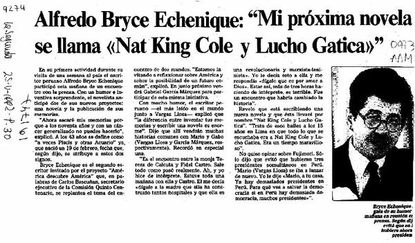 Alfredo Bryce Echenique, "Mi próxima novela se llama "Nat King Cole y Lucho Gatica" [artículo].