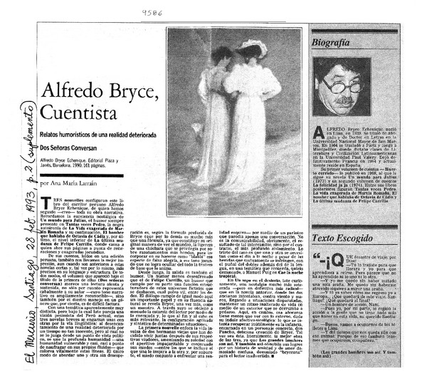 Alfredo Bryce, cuentista [artículo] Ana María Larraín.