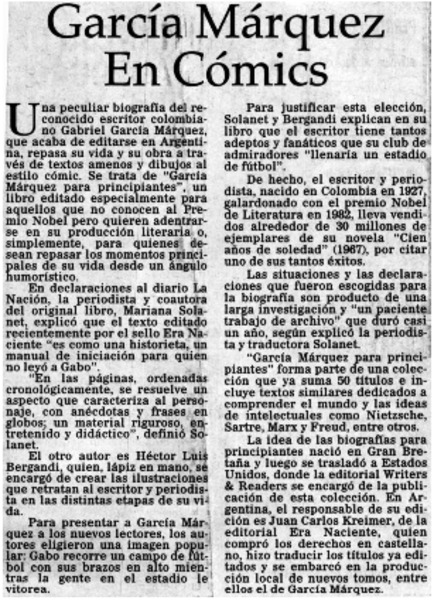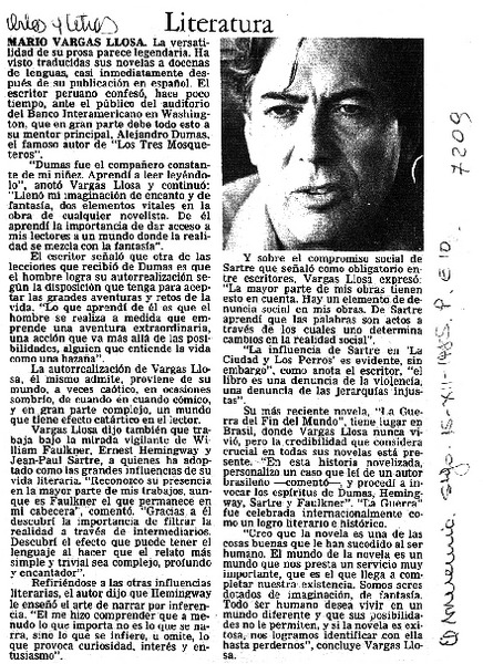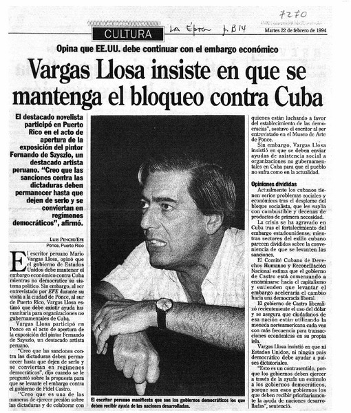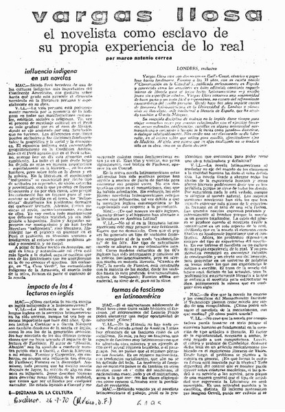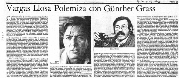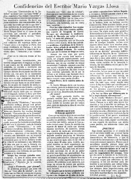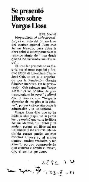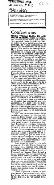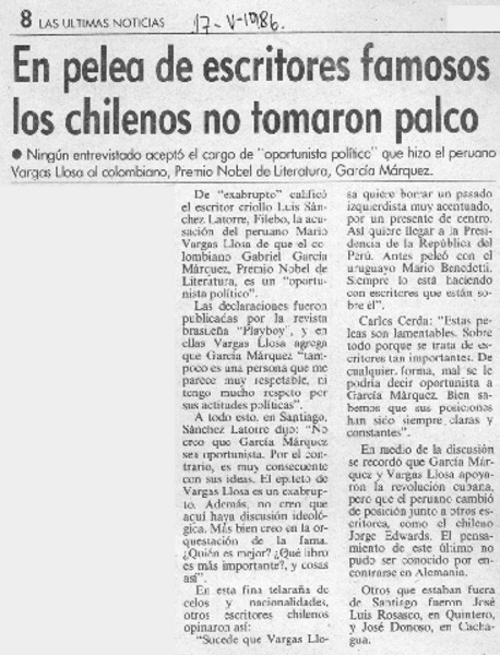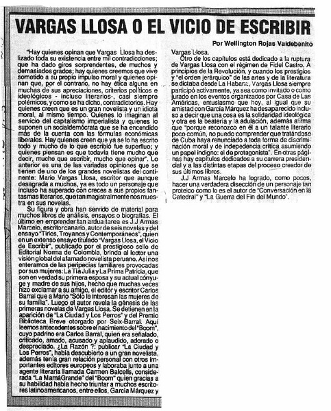 Vargas Llosa, "García Márquez es un oportunista político --". [artículo]