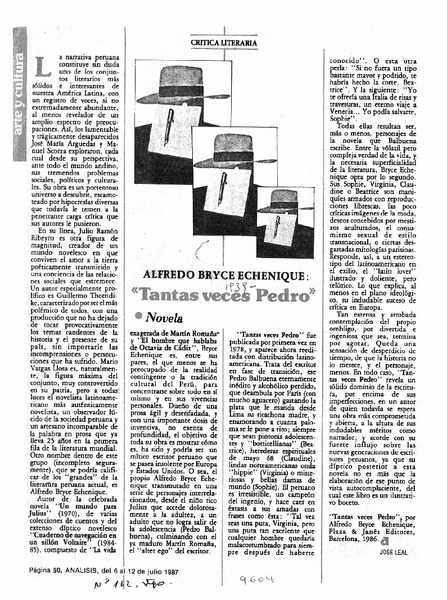 Alfredo Bryce Echenique, "Tantas veces Pedro o el destino del mal amor" [artículo] A. E. Torrealba.