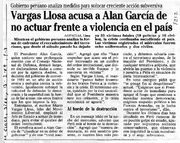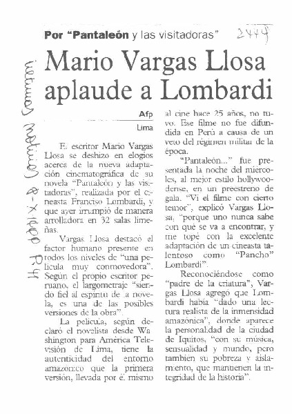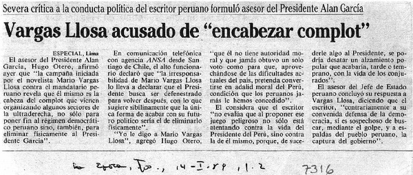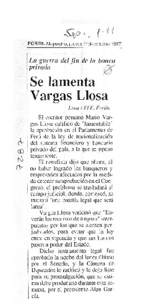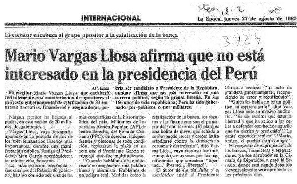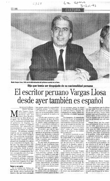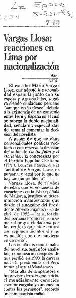 Vargas Llosa, reacciones en Lima por nacionalización. [artículo]