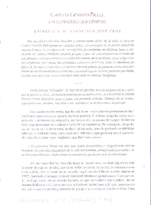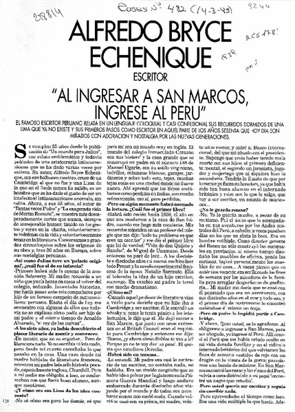Alfredo Bryce Echenique, escritor "Al ingresar a San Marcos, ingresé al Perú" [artículo] Carlos Franz.