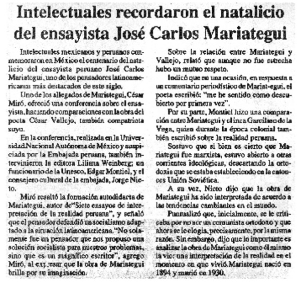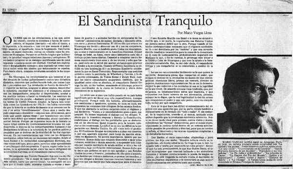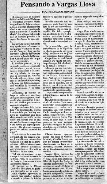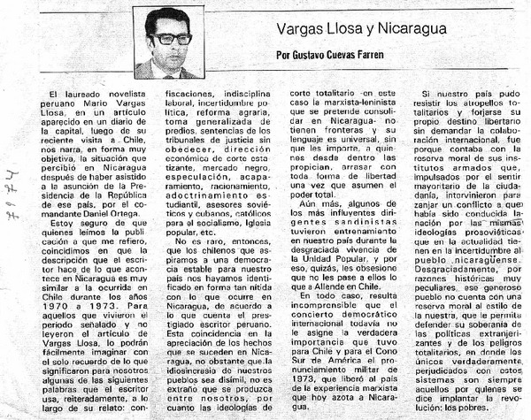 Vargas Llosa y Nicaragua [artículo] Gustavo Cuevas Farren.
