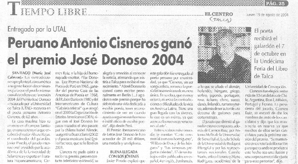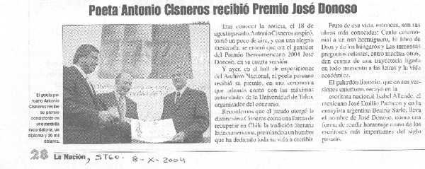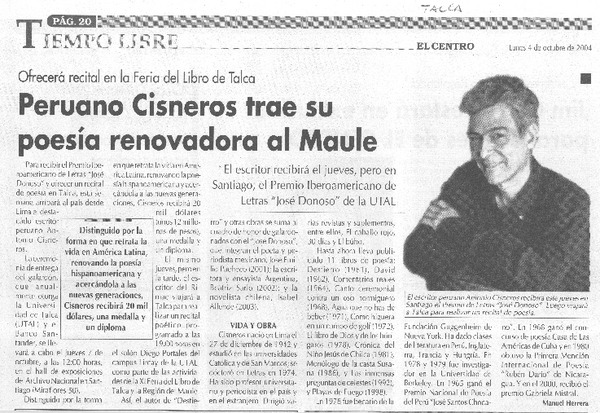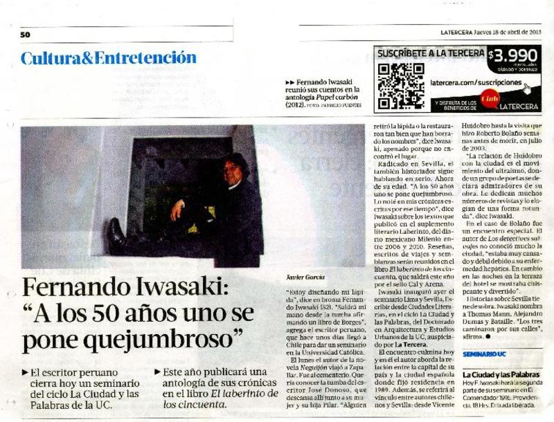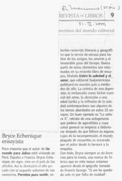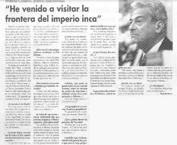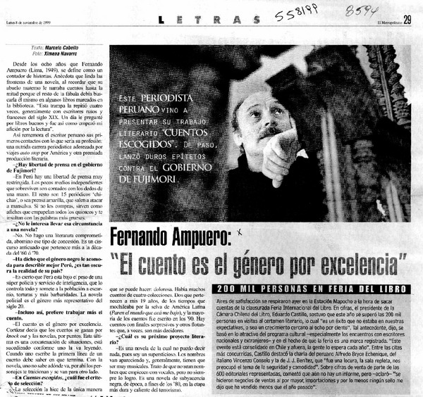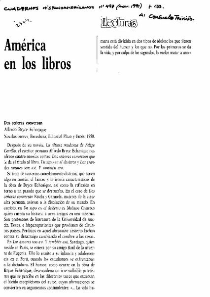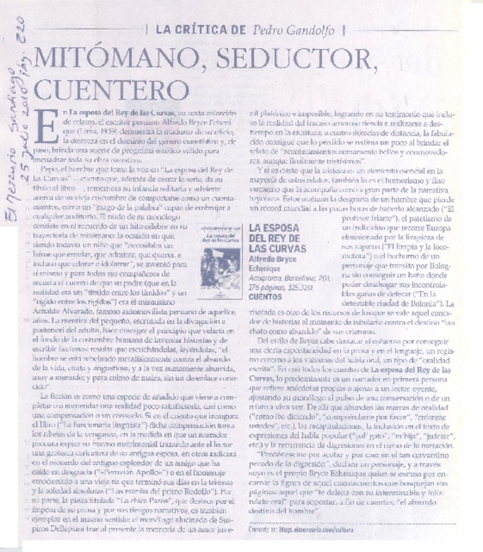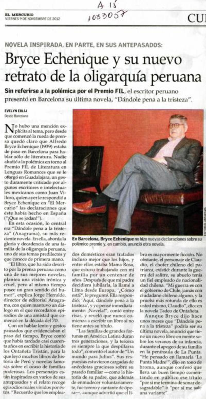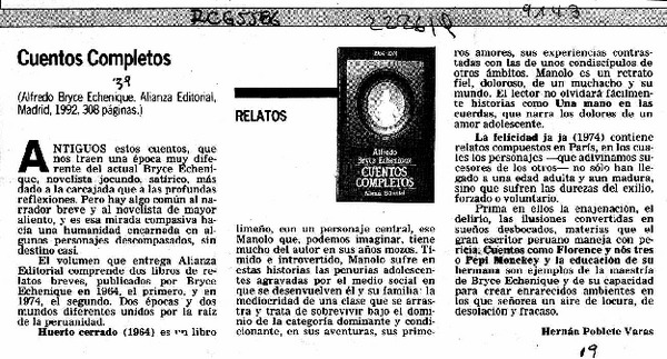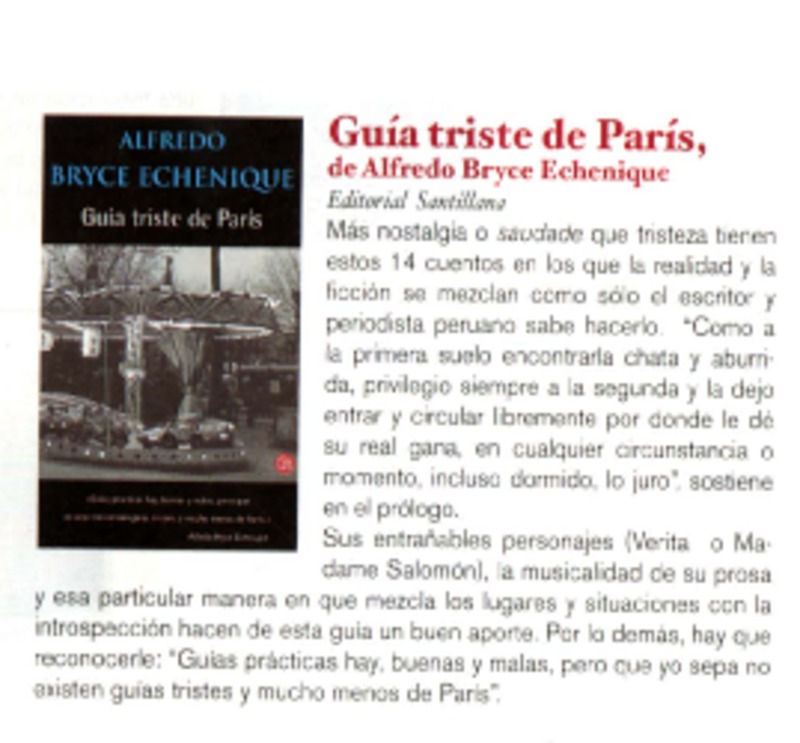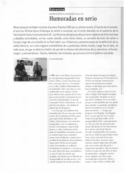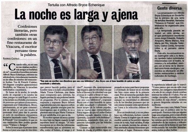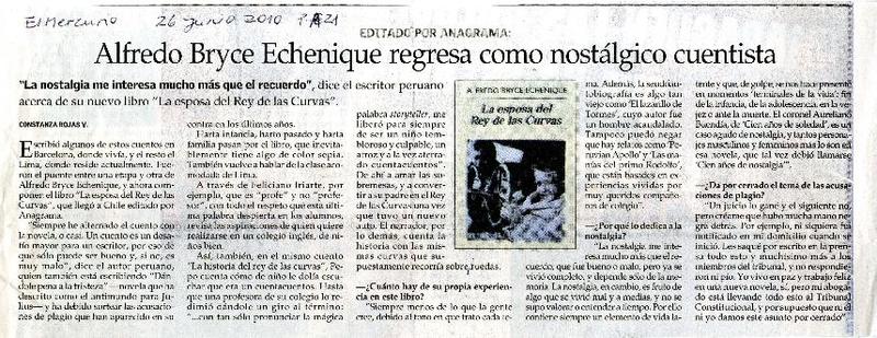 Alfredo Bryce Echenique regresa como nostálgico cuentista (entrevista) [artículo] Constanza Rojas V.