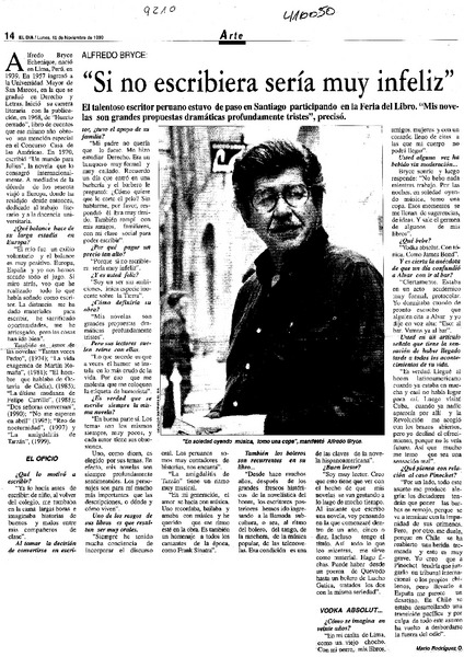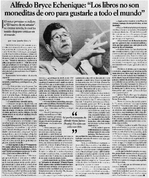 Alfredo Bryce Echeñique : "Los libros no son moneditas de oro para gustarle a todo el mundo" [artículo] Ana Josefa Silva V.