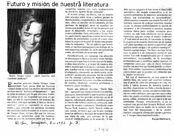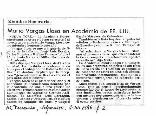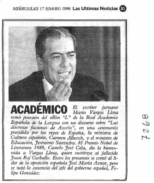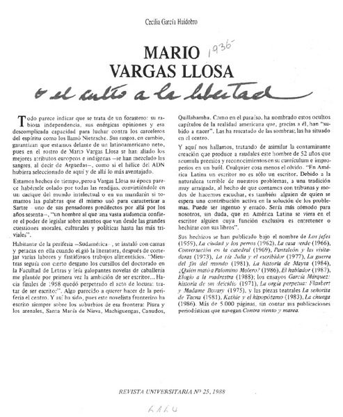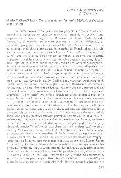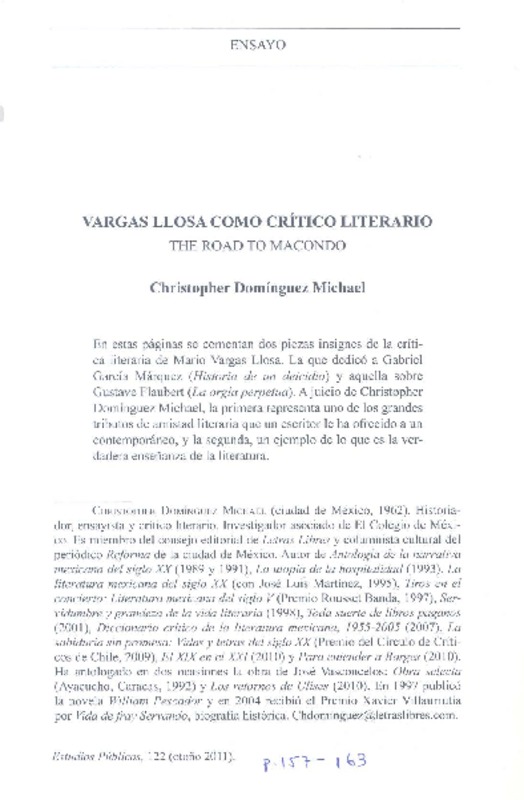 Acerca de Vargas Llosa [artículo] Carmen Gaete Nieto del Río.