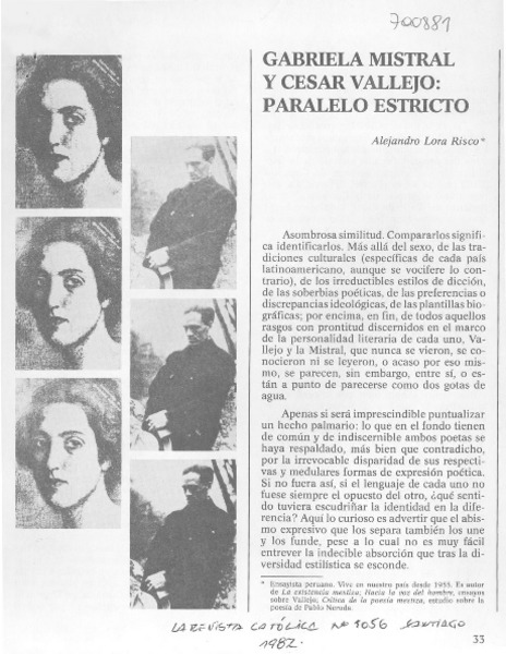 Autores chilenos - OIR SU VOZ - Vallejo, César - FONTAINE TALAVERA, ARTURO - Autores peruanos