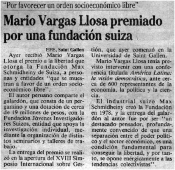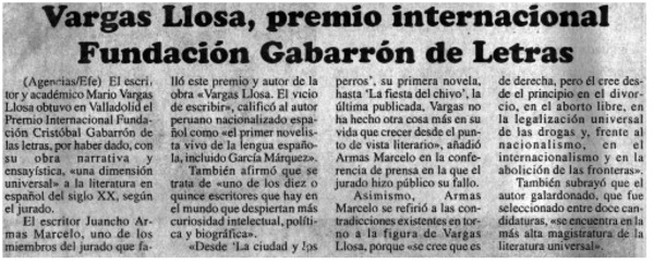 Vargas Llosa, premio internacional Fundación Gabarrón de Letras. [artículo]