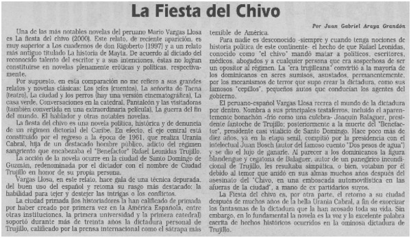 Vargas Llosa y la fiesta del chivo [artículo] Jorge Loncón.