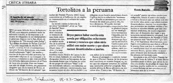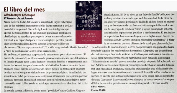 Autores peruanos - Bryce Echenique, Alfredo - Entrevistas - Huerto de mi amada, El