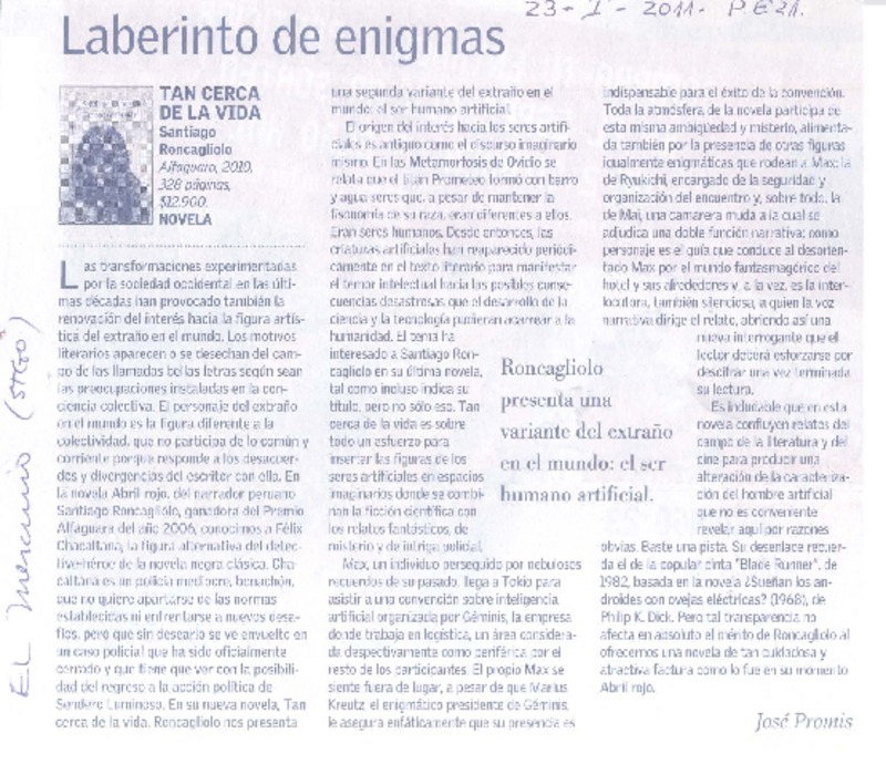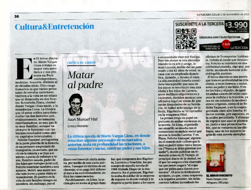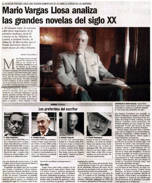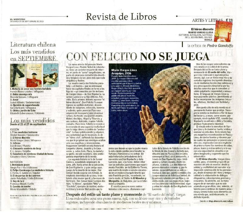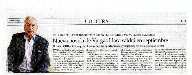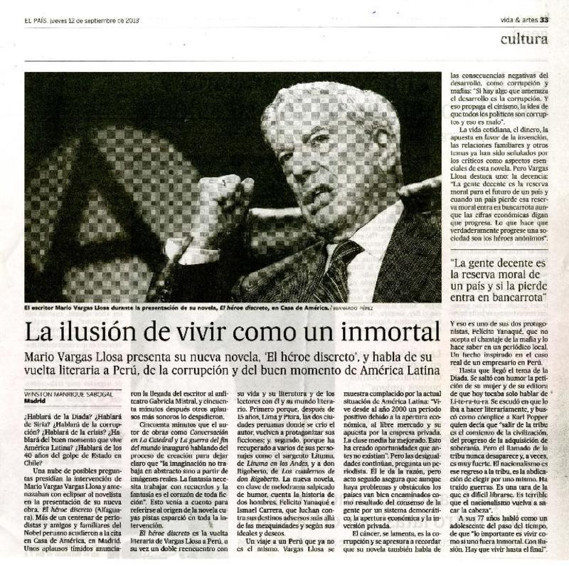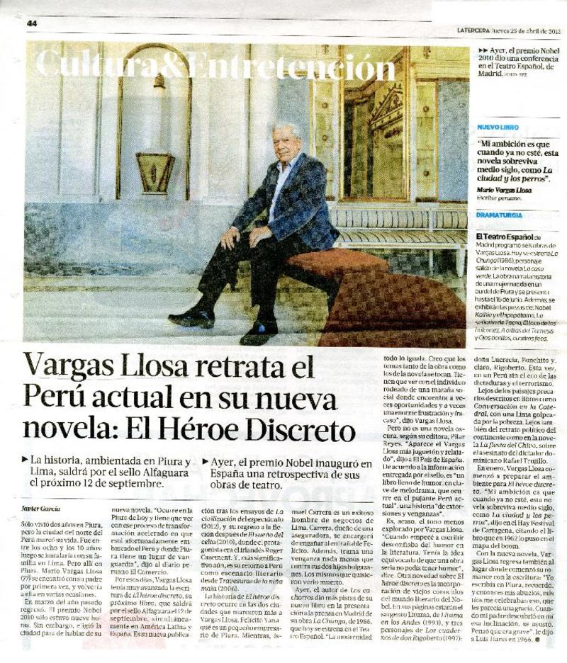 Vargas Llosa retrata el Perú actual en su nueva novela: El Héroe discreto [artículo] Javier García.