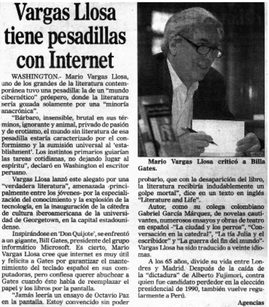 Vargas Llosa tiene pesadillas con internet. [artículo]