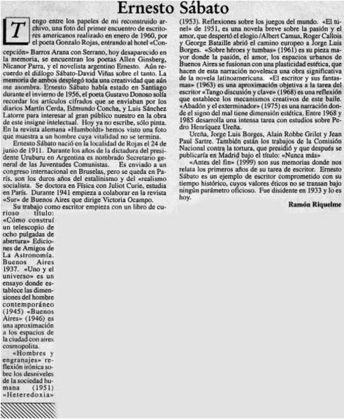 Vargas Llosa revive a Juan Carlos Onetti [artículo] Constanza Rojas V.