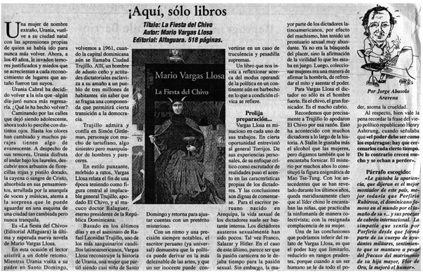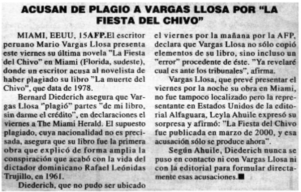 Acusan de plagio a Vargas Llosa por "la fiesta del chivo". [artículo]