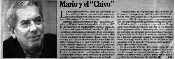Vargas Llosa presentará "La fiesta del chivo". [artículo]